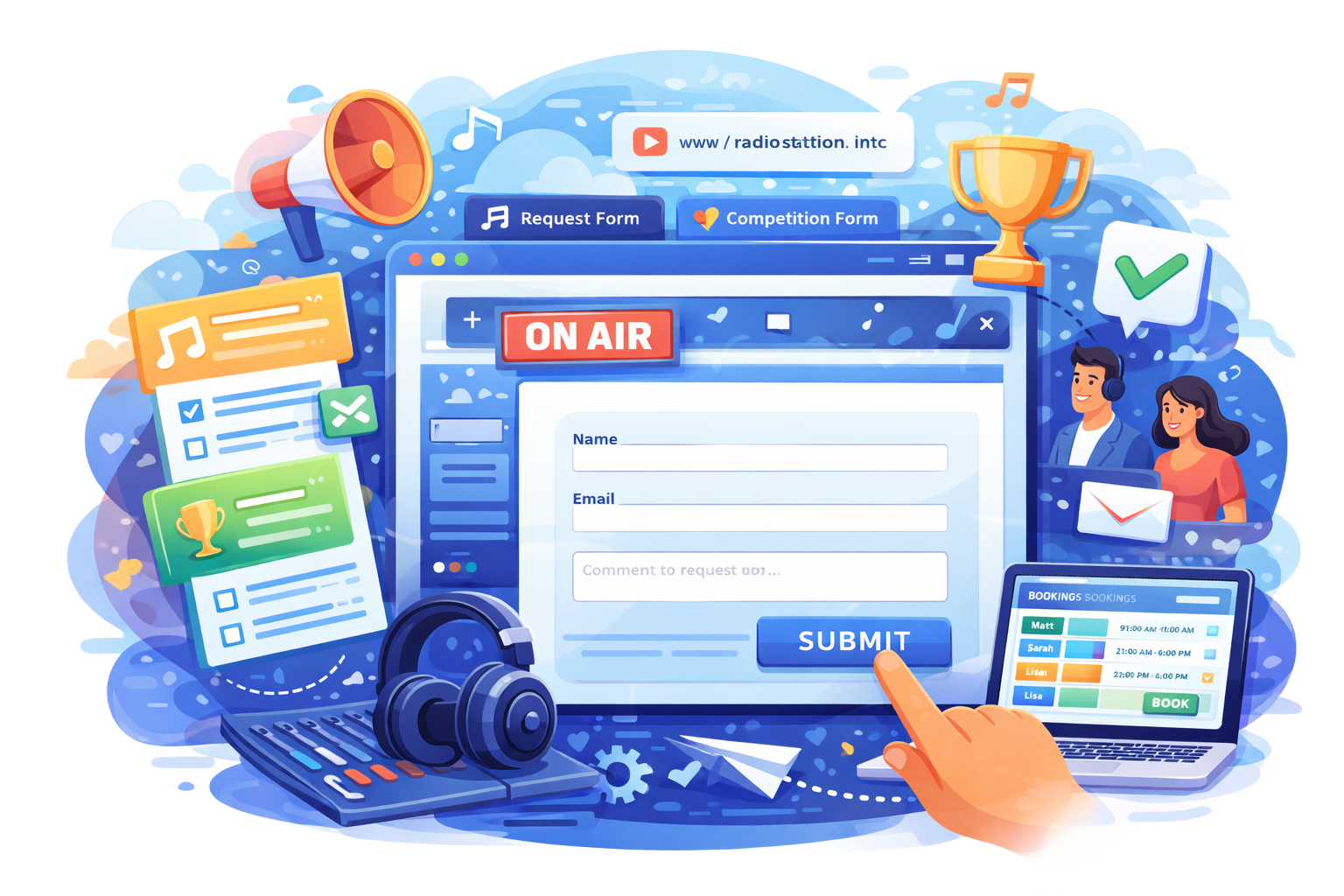 The Forms feature in Radio Prep is a powerful and flexible tool for creating custom forms to collect data from your listeners or users. Each form is fully customizable, so you can tailor it to suit your station’s needs, whether you’re gathering song requests, running a competition, or just collecting general feedback.
